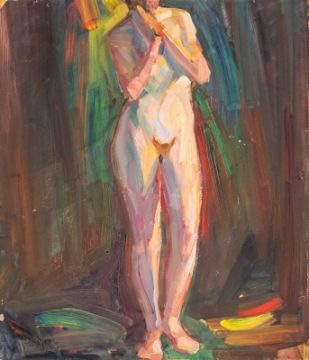 1863 Hannover - 1961 Bückeburg - "Die Jünger" - Öl/Karton. 40,5 x 47 cm. Sign. l. o.: C. Wiederhold. Rückseitig bez. und betit. Rahmen. - Mythologische Szene - Öl/Karton. 34 x 25,5 cm. Sign. r. u.: C. Wiederhold. Rahmen. - Prediger - Gouache/Karton. 43,5 x 50 cm. Sign. M. u.: C. Wiederhold. Rückseitig abgeschnittenes Motiv eines weiblichen Aktes. Farbverluste. Randmängel. - Lit.: Vollmer 5, S. 128. Wiederhold studierte zunächst Architektur an der Technischen Hochschule und dann 1888-90 Malerei am Berliner Kunstgewerbe-Museum. 1905 erhielt er den Meistertitel der "Bauhütte zum weißen Blatt". Er unterrichtete von 1900-1930 an der Kunstgewerbeschule Hannover. 1943 wurde sein Atelier und alle darin befindlichen Bilder bei einem Bombenangriff zerstört. 1958 fand zu Ehren seines 95. Geburtstages eine Sonderausstellung im Kunstverein Hannover statt.