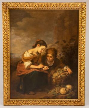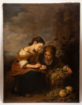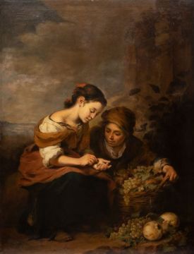 1877 Auerbach - 1950 Kloster Ettal (nach dem Original von Bartolomé Esteban Murillo) - "Die Kleine Obsthändlerin" - Öl/Lwd. 146 x 113 cm. Auf der Rückseite bez. r. u.: cop. v. Jos. Henfling (19)08. Rahmen. Das Originalgemälde, entstanden um 1670/75, befindet sich in der Alten Pinakothek, München.