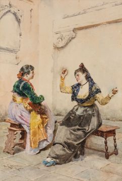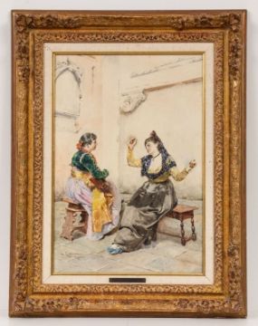 1843 Rom - 1925 Rom - Zwei Frauen beim Musizieren - Aquarell/Papier. 48 x 32,5 cm. Sign. und ortsbez. l. u.: N. Cipriani / Roma. Unter Glas gerahmt (Zierrahmen).