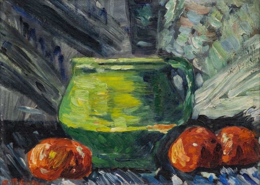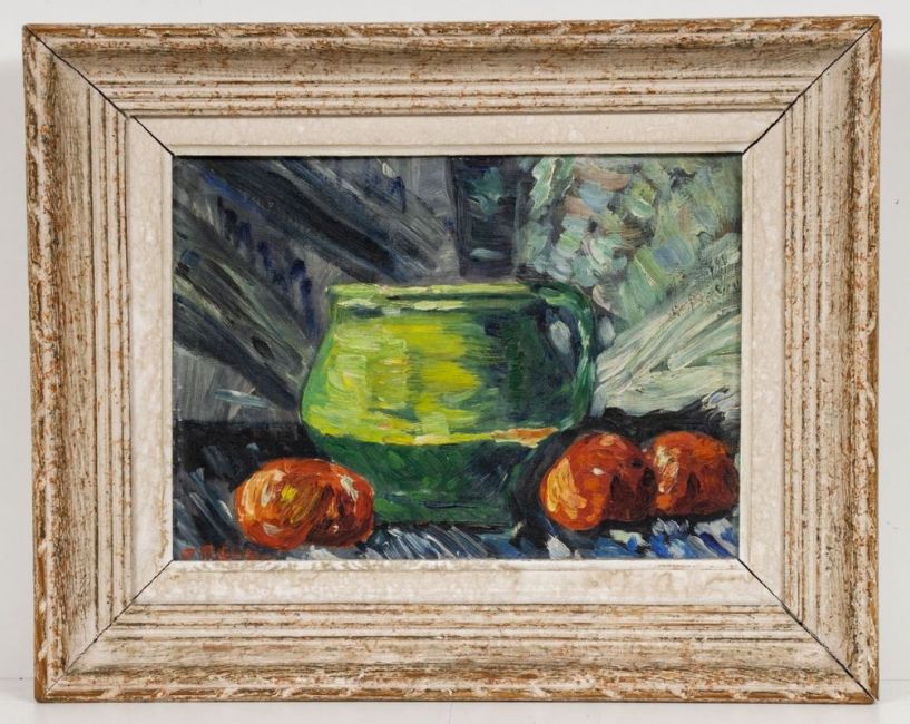 Künstlerin des 20. JAhrhunderts - Stillleben - Öl/Leinwandmalkarton. 24 x 32,5 cm. Sign. l. u.: F. Mayer. Rückseitig bez. und dat.: (...) 1958. Rahmen.