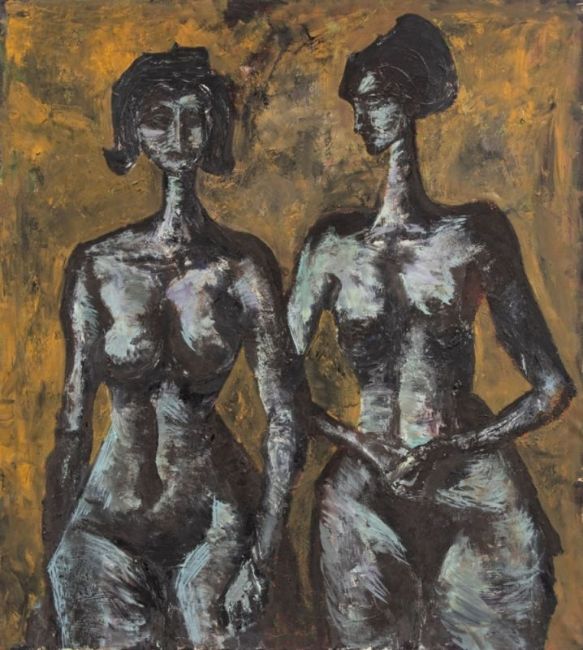 1922 Hannover - 1991 Hannover attr. - Zwei weibliche Akte - Öl/Lwd. 110 x 100 cm. - Lit.: Vollmer 3, S. 72. Knoke studierte von 1938-40 an der Werkkunstschule Hannover. Mitglied des Hannoverschen Künstlervereins. Studienreisen führten ihn nach Europa und in den vorderen Orient.