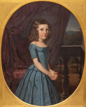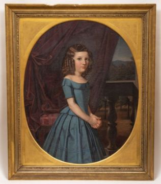 1816 Kassel - 1880 - Mädchenbildnis - Öl/Lwd. 93 x 79 cm (Keilrahmen). 90 x 72 cm (ovaler Bildausschnitt). sign. und dat. M. r.: Schirmer / pinx: 1853. Zeitgenössischer Rahmen. Krakelee. Vereinzelte Farbverluste. Schmutz- sowie Stockflecken (rest. bed.). - Lit.: Th.-B. XXX, S. 87.