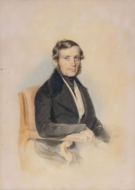 1814 Wien - 1860 Wien - Bildnis eines Herren im Sessel - Aquarell/Papier. 30,5 x 22,5 cm. Sign. und dat. l. u.: L. Fischer / 1838. Unter Glas gerahmt (alter Rahmen).
