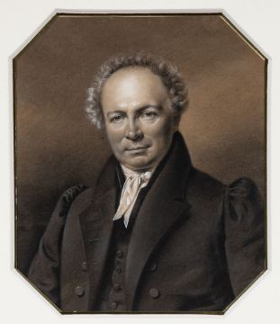 1797 Großbadegast - 1857 Berlin Kopie nach (?) - Bildnis Carl Douglas (1774 Insterburg - 1845 Königsberg) - Kohle und weiße Kreide. Weiß gehöht/Papier (oktogonal). 22,5 x 8,8 cm. Auf dem Unterlegkarton auf altem Papieretikett bez.: Carl Douglas / geb. 6. Sept. 1774 zu Insterburg / + 14. Januar 1845 zu Königsberg / Copie nach Krüger. Auf der Rahmenrückseite mit weiteren Angaben zum Dargestellten. Passepartout. Unter Glas gerahmt. - Lit. (vgl.): https://www.bildarchiv-ostpreussen.de/cgi-bin/bildarchiv/suche/show_foto.cgi?lang=lietuviu &id=43533