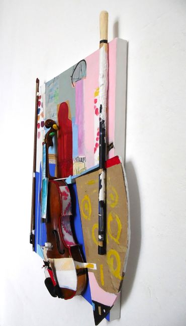 Berlin - Es ist was es ist, ein neues Leben - Material: Geige, Geigenbogen, Collage, Maße: ca. 81 x 55 x 13 cm. Internet: www.claudette-griffiths.de