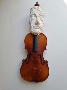 Bergisch Gladbach - Verstimmt- Gesichtsformung aus Zellstoff/Cellulose Material: Violine, weißer Gesichtsabdruck. Internet: www.w-heuwinkel.de