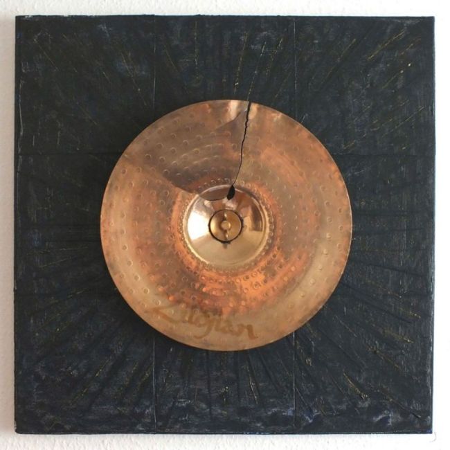 Hannover - Broken Dreams - Material: Acrylfarben auf Leinwand auf Multiplex, Schlagzeugbecken. L/B/H: 70/70/6 cm.
