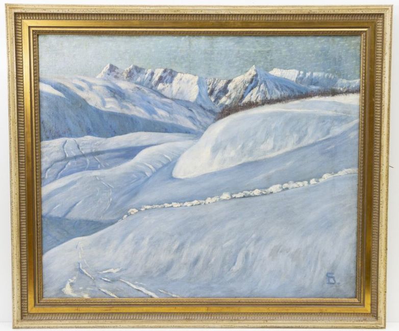- Verschneite Berglandschaft - Öl/Lwd. 74 x 88 cm. Monogr. r. u.: GS (?) (ligiert). Rahmen.