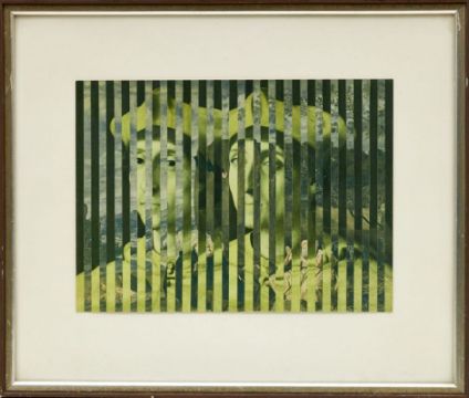 1914 Protivín - 2002 Prag - Ohne Titel - Collage/Papier. 22,8 x 31 cm. Monogr. und dat. r. u.: JK (19)63. Unter Glas gerahmt. Kl. Riss r. o. Tschechischer Künstler und Schriftsteller. Erfinder der Rollage-Technik.