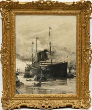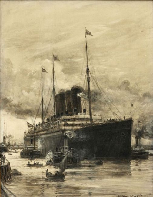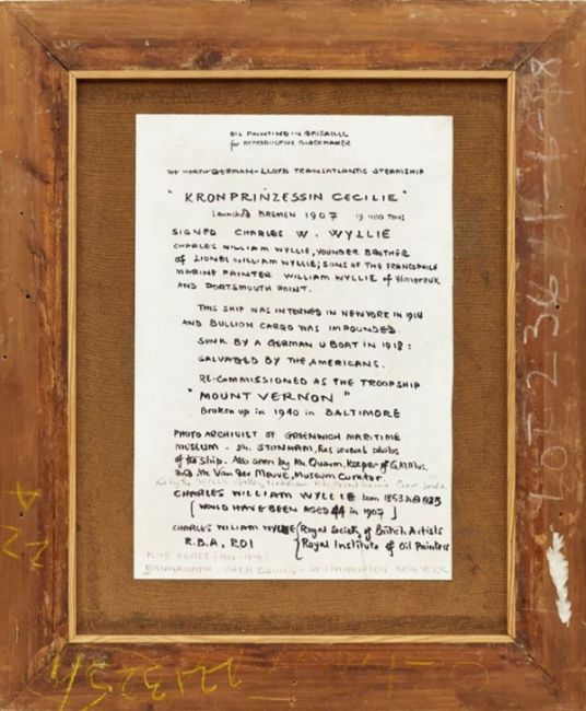 1853 London - 1923 London - Der Doppelschrauben-Schnellpostdampfer "Kronprinzessin Cecilie" - Öl/Lwd. auf Karton. 46 x 36 cm. Sign. r. u.: Charles W Wyllie. Rahmen.