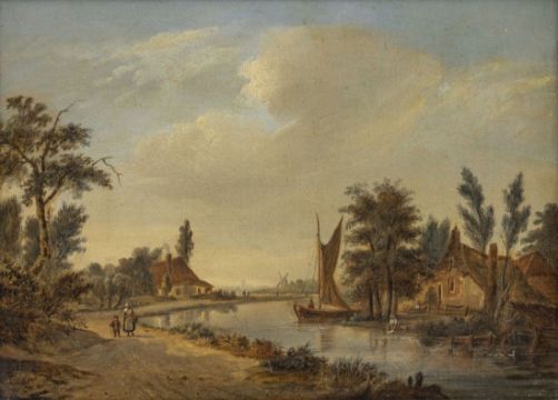- Holländische Flusslandschaft mit Wanderern Öl/Holz. 23,7 x 32,2 cm. Monogr. M. u.: G: L: K. Zierrahmen.