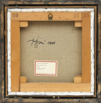 1937 Lecco - 2017 - Senza titolo ("Nr. 59") - Acryl/Lwd. 35,2 x 35,2 cm. Auf der Rückseite sign. und dat.: Stefanoni 1985. Darunter auf Papieretikett der Galerie Franz Paludetto, Torino bez. und betit. Rahmen. Zwei kleine Farbabplatzer im Randbereich. - Zertifikat (Kunsthaus Artes, Rheda-Wiedenbrück) mit Archiv-Nr. liegt in Kopie vor.