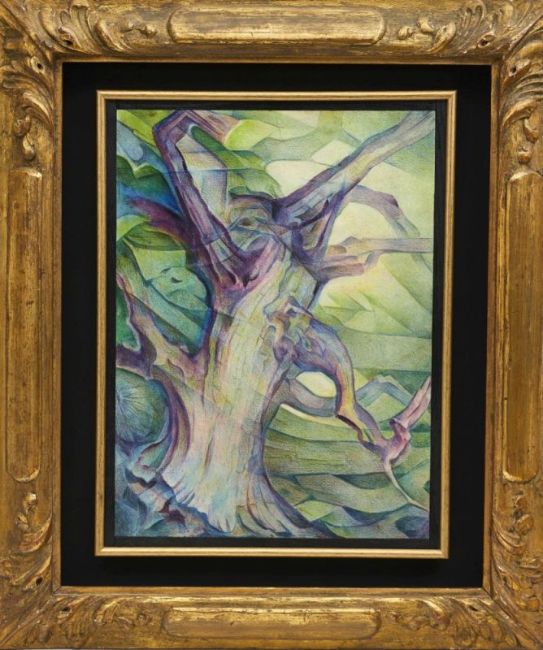 1884 Magdeburg - 1969 Hannover - "Baum" - Mischtechnik/Malpappe, auf Holz kaschiert. 44,8 x 33 cm. Monogr. und dat. l. u.: HM (19)10. Rahmen. - Expertise (Kunsthandel Markus Tollmann) mit Provenienzangabe (Nachlass Hedwig Marquardt) aus dem Jahr 1993 liegt in Kopie vor.