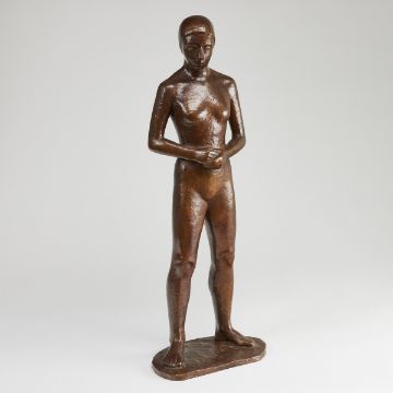 1923 - 2016 Wolfsburg - Junge Frau - Bronze. Braun patiniert. H. 54,5 cm. Auf der Plinthe monogr. u. dat.: OR (19)50. Gießervermerk: GUSS BARTH RINTELN