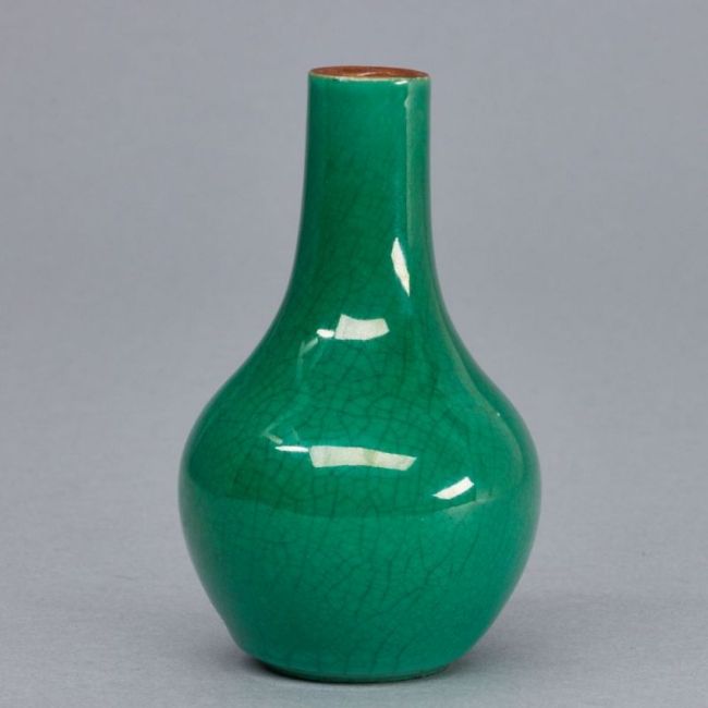 China, 19. Jh. Porzellan, grün glasiert. Glasur mit leichtem Krakelee. H. 10,5 cm.