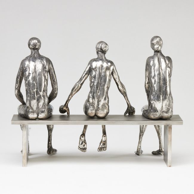 1927 - lebt in Tuttlingen -" Menschen auf der Bank"- Edelstahl. 18,5 x 25 x 11 cm. Am Oberschenkel monogr. u. dat.: RM. (20)16,17,18. Provenienz: Galerie Depelmann, Langenhagen.