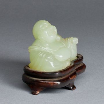 China, 19/20. Jahrhundert. Jade, geschnitzt und hochpoliert, H. o. / m. Holzsockel 6 / 9 cm. Leichte Altersspuren.