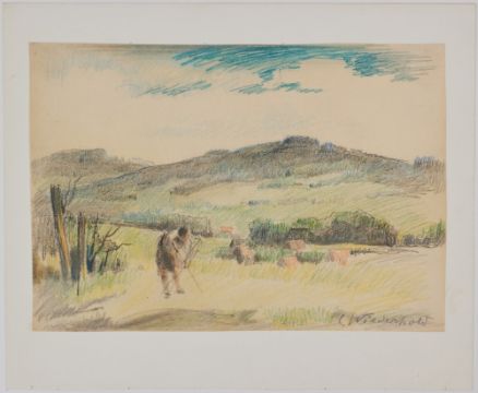 1863 Hannover - 1961 Bückeburg - Konvolut von 7 Zeichnungen (Landschaften und Porträts) - 7 Mischtechniken/Papier auf Karton. Bis zu cm. 25,5 x 35,5 cm. Teils sign.: C. Wiederhold. Teils bez. - Lit.: Vollmer 5, S. 128. Wiederhold studierte zunächst Architektur an der Technischen Hochschule und dann 1888-90 Malerei am Berliner Kunstgewerbe-Museum. 1905 erhält er den Meistertitel der "Bauhütte zum weißen Blatt". Er unterrichtete von 1900-1930 an der Kunstgewerbeschule Hannover. 1943 wird sein Atelier und alle darin befindlichen Bilder bei einem Bombenangriff zerstört. 1958 findet zu Ehren seines 95. Geburtstages eine Sonderausstellung im Kunstverein Hannover statt.
