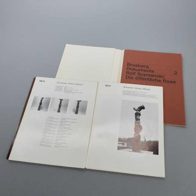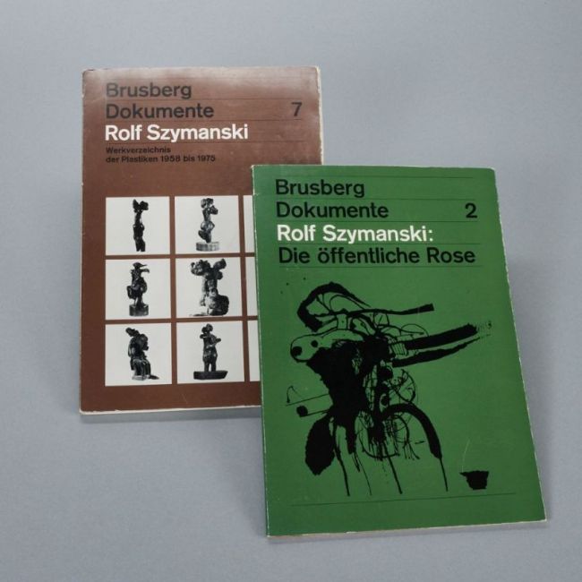 - "Brusberg Dokumente 2, Rolf Szymanski, Die öffentliche Rose" - Galerie Brusberg, Hannover, 1972. Guter Zustand. - "Brusberg Dokumente 7. Rolf Szymanski, Werkverzeichnis der Plastiken 1958 bis 1975"- Galerie Brusberg, Hannover, 1975. Mit 1 Original Radierung, herausfallende Seiten.