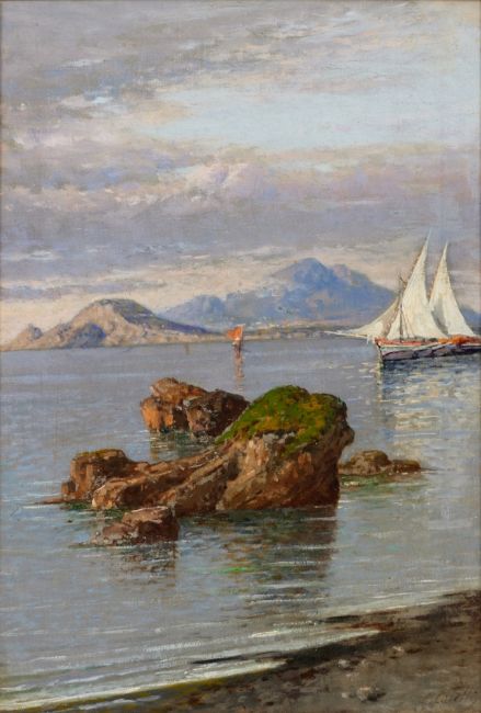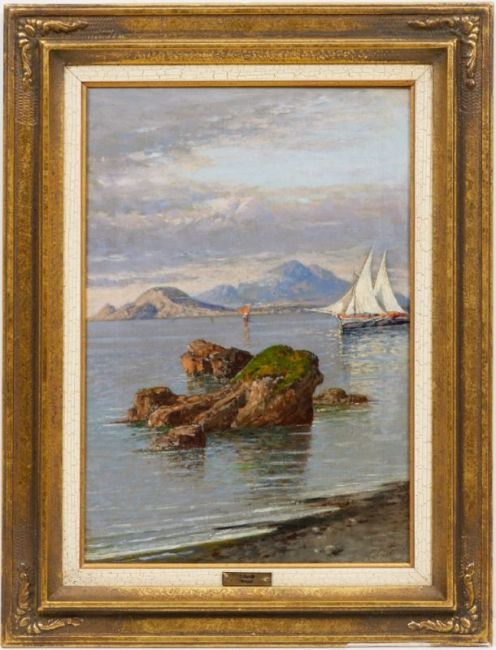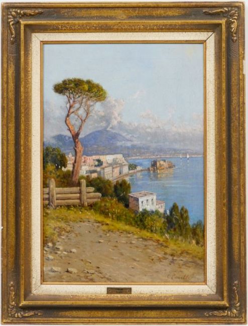 1858 Neapel - 1921 Portici - Paar Veduten von Neapel mit dem Vesuv - Öl/Lwd. auf Holz (2). Je 36,5 x 25,4 cm. Jeweils sign. r. u.: G. Carelli. Rahmen.