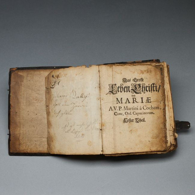 - "Das Grosse Leben Christi und Maria" - Maria Susana Ja?cklinin, Johann Ja?cklins Churfu?rstl.hof-buchdruckers und handlers seel. erbin, Mu?nchen, 1716. Einband gerissen. Alterungs-und Gebrauchsspuren.