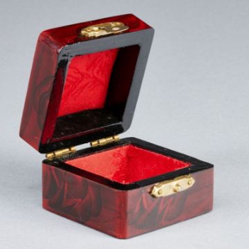 China, 20. Jahrhundert. Holz, Lack in Rot, Schwarz bemalt. H. 6 x B. 6 x T. 4 cm. Alters- u. Gebrauchsspuren.