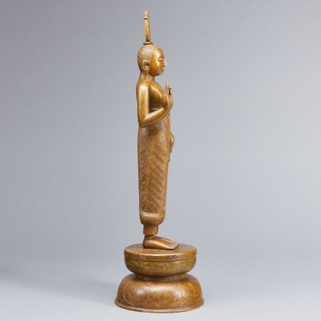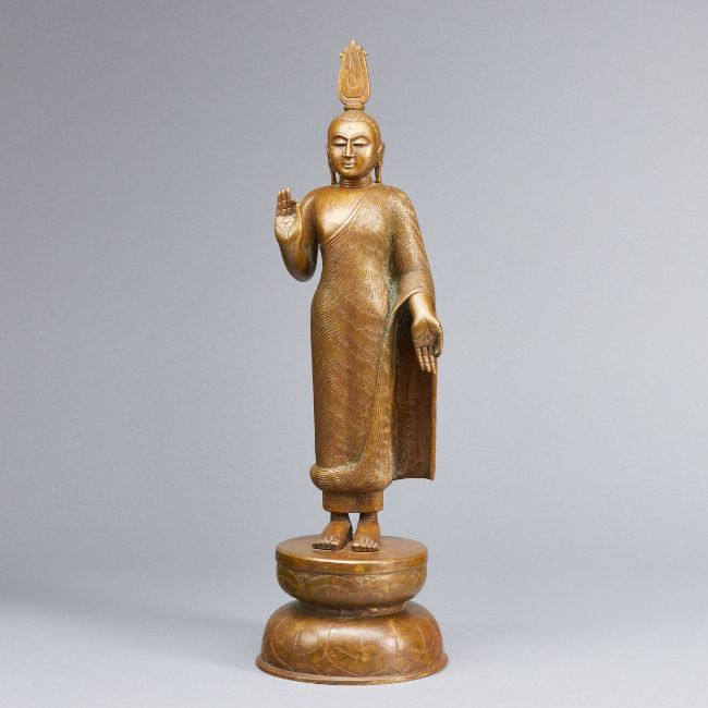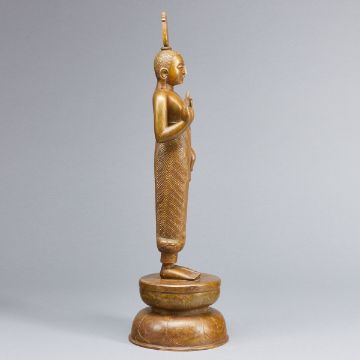 Myanmar, 19. Jahrhundert. Bronze, H. 46 cm. Auf Metallsockel fixiert. Altersspuren. Rechter Schulter vereinzelt leicht ber., Gew.: 4150 Gramm.