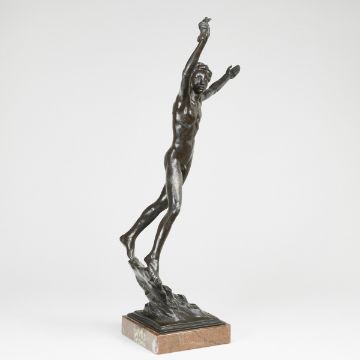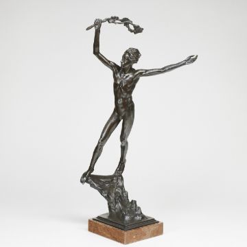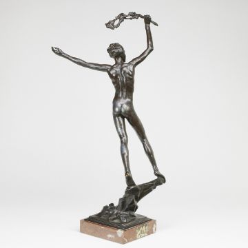 1880 Nové Mesto na Morave - 1925 Prag - Der Sieger - Weißmetall. Braun patiniert. Marmorsockel. H. o./m. Sockel 68/64 cm. Sign.: STURSA. Ber. - Prov.: Privatsammlung. -Lit.: Jiri Masin, Jan Stursa, Nr. 75.