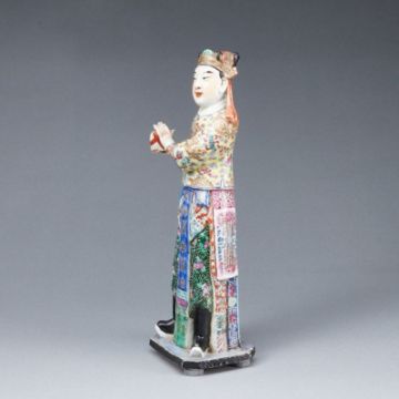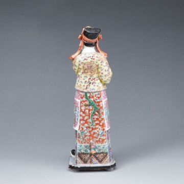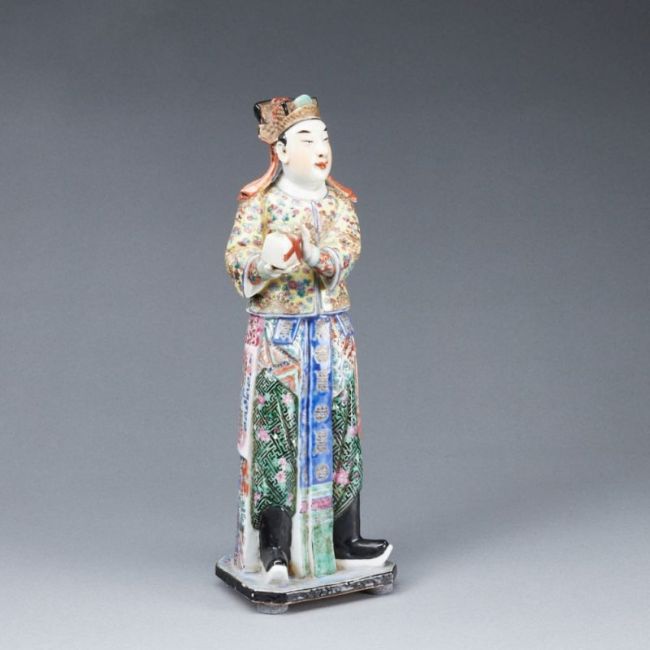 China, 19. Jh. Porzellan, Unterglasur bemalt, H. 33 cm. Am Hals und Kopfbedeckung rest., ber., best.