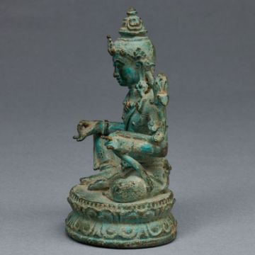 Indonesien. Bronze. H. 12,3 cm. Alterspatina / Altersspuren, vereinzelt leicht ber.