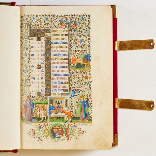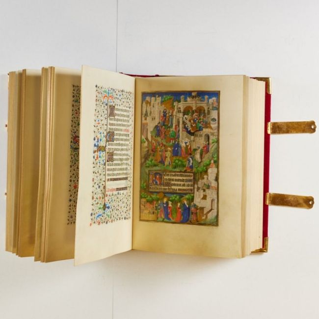 Luzern, 2016. Org. Nachbildung des Originals um 1420. Limitiert 680 Exemplare. 468 Seiten, 28,6 × 19,7 cm. Zustand: Neuwertig, Sammlungswürdig. Mit dem Sobieski-Stundenbuch gab Margarete von Burgund (1393-1441) um 1420 einen Höhepunkt der spätgotischen Buchillumination in Auftrag. Es ist davon auszugehen, dass es sich um ein Hochzeitsgeschenk für ihre Ehe mit Arthur III. (1393-1458), dem Herzog der Bretagne handelte. Die 468 Seiten der Pergamenthandschrift enthalten französische und lateinische Gebete zur privaten Andacht, die von unglaublichen 60 ganzseitigen Miniaturen, mehr als 400 dargestellten Szenen sowie 60 großformatigen und unzähligen kleineren Prachtinitialen ergänzt werden. Da diese imposante Menge an Illuminationen nicht von einem einzelnen Künstler hätte bewältigt werden können, arbeiteten drei führende Meister der Zeit über einen längeren Zeitraum an der aufwändigen Gestaltung.