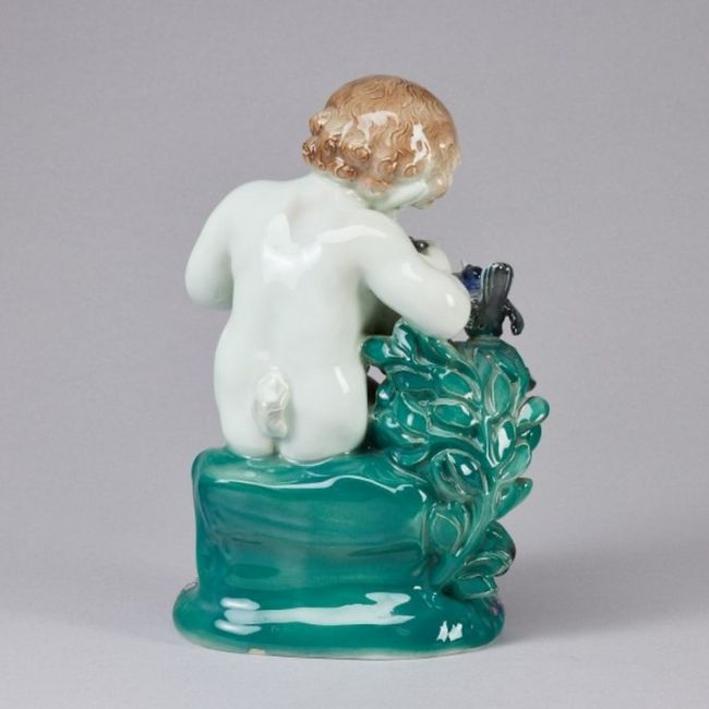 Porzellanfabrik Karl Ens, Volkstedt um 1921-1925. Porzellan, weiß, glasiert. Unter der Glasur polychrom bemalt. Auf der Glasur silberfarben bemalt. Unter der Glasur grüne Marke: Mühlenmarke ENS, Ens-Porzellan Volkstedt, Handgemalt. Eingeritzte Modell-Nr. 5236. 1. Wahl. Auf dem Sockel bez.: J KOPP. H. 23,5 cm, B. 15,5 cm. - Provenienz: Aus dem Besitz der Familie von Buttlar. Modell von Joseph Kopp. - Zustand: min. Chip am hinteren Sockelrand.
