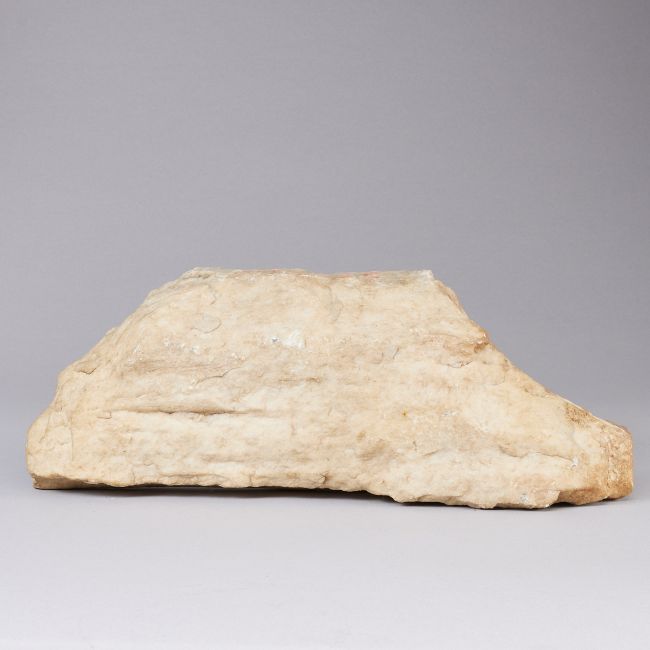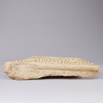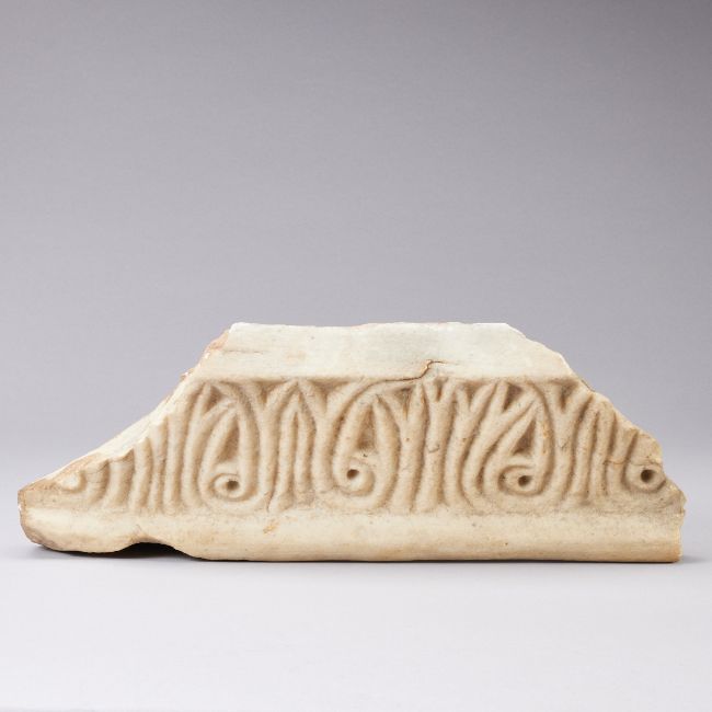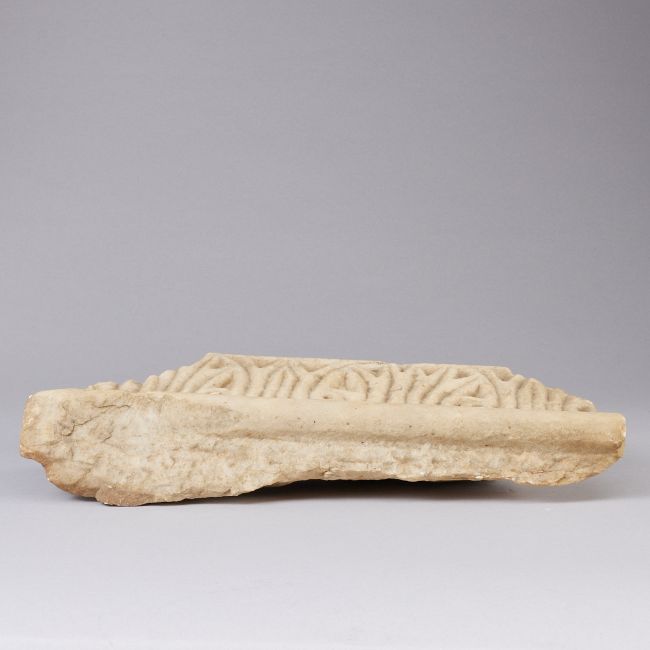 wohl Mamor. 43cm x 16,5cm x 9cm. Teil eines großen Steinreliefs mit geschwungener Ornamentik.