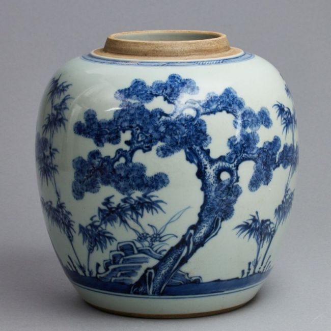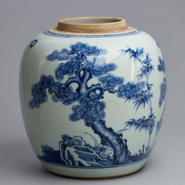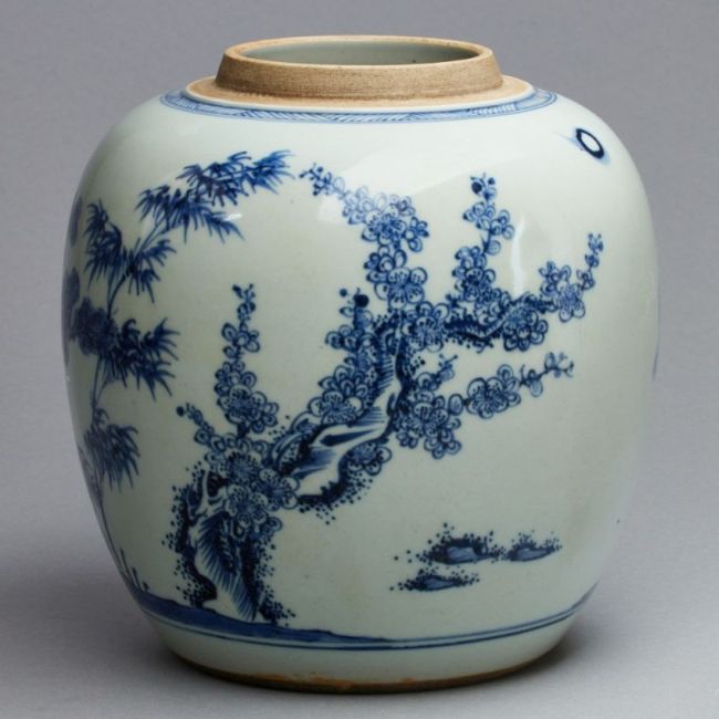 China, wohl 18. Jahrhundert. Porzellan, glasiert, unterglasurblau bemalt. H. 21 cm. D. der Öffnung 8,5 cm. Minim. Alters- u. Gebrauchsspuren.