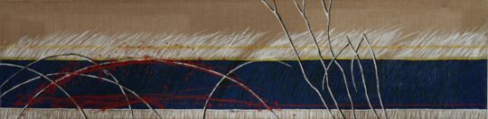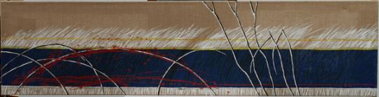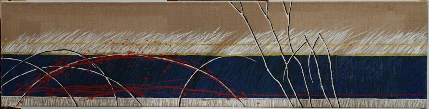 1954 Eisenstadt - 2014 Oslip - "Der See" (2012) - Öl/Lwd. 50 x 200 cm. Rückseitig auf Etikett der Galerie Depelmann, Langenhagen bez. Kratzer rechts. - Provenienz: Galerie Depelmann, Langenhagen.