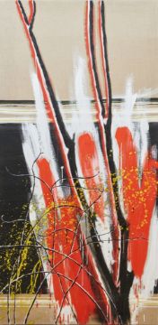 1954 Eisenstadt - 2014 Oslip - "Die Hagebutte sprießt von den Bäumen" - Öl/Lwd. 200 x 100 cm. Verso auf Galerieetikett (Galerie Depelmann, Langenhagen) bez. - Provenienz: Galerie Depelmann, Langenhagen.