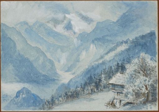 1849 Stoke Newington - 1921 Feldafing zugeschrieben - "Berner Oberland: Lauterbrunnental mit Blick auf die Jungfrau" - Aquarell/Papier. 17,7 x 25,2 cm. Bez. auf Unterlegkarton. Das Blatt liegt lose.