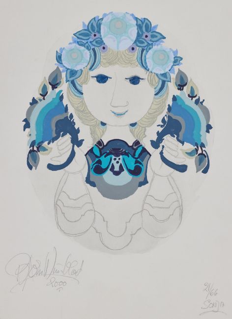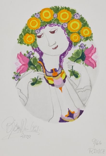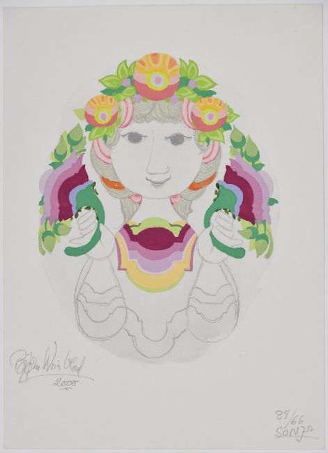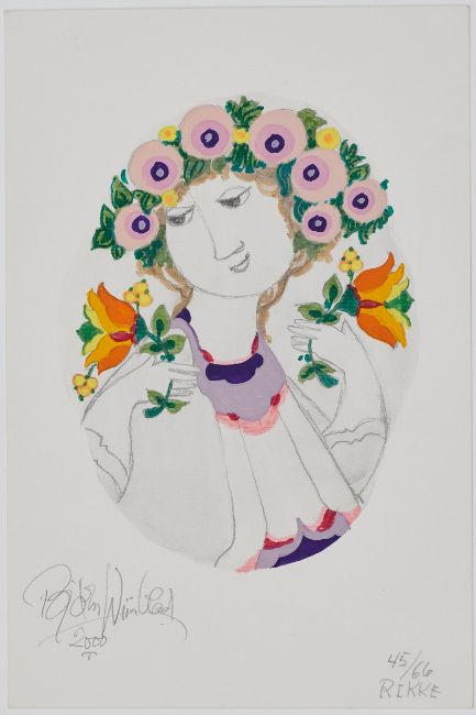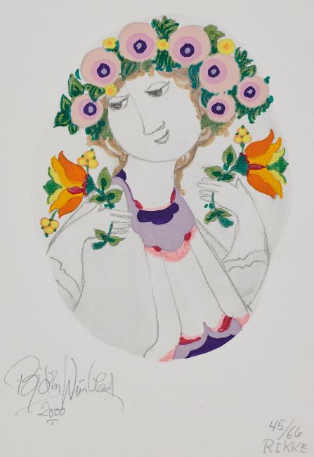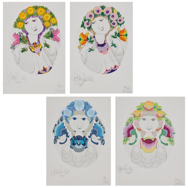 1918 - 2006 - "Rikke" - Gouache/Papier. 24 x 16 cm. Sign. und dat. l. u.: Björn Wiinblad / 2000. Bez. r. u.: 9/66 / RIKKE. Das Blatt liegt lose. - "Rikke" - Gouache/Papier. 24 x 16 cm. Sign. und dat. l. u.: Björn Wiinblad / 2000. Bez. r. u.: 45/66 / RIKKE. Das Blatt liegt lose. - "Sonja" - Gouache/Papier. 31 x 22,5 cm. Sign. und dat. l. u.: Björn Wiinblad / 2000. Bez. r. u.: 21/66 / SONJA . Das Blatt liegt lose. - "Sonja" - Gouache/Papier. 31 x 22,5 cm. Sign. und dat. l. u.: Björn Wiinblad / 2000. Bez. r. u.: 34/66 / SONJA . Das Blatt liegt lose.