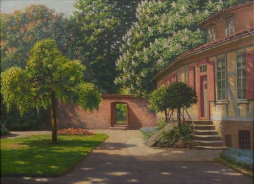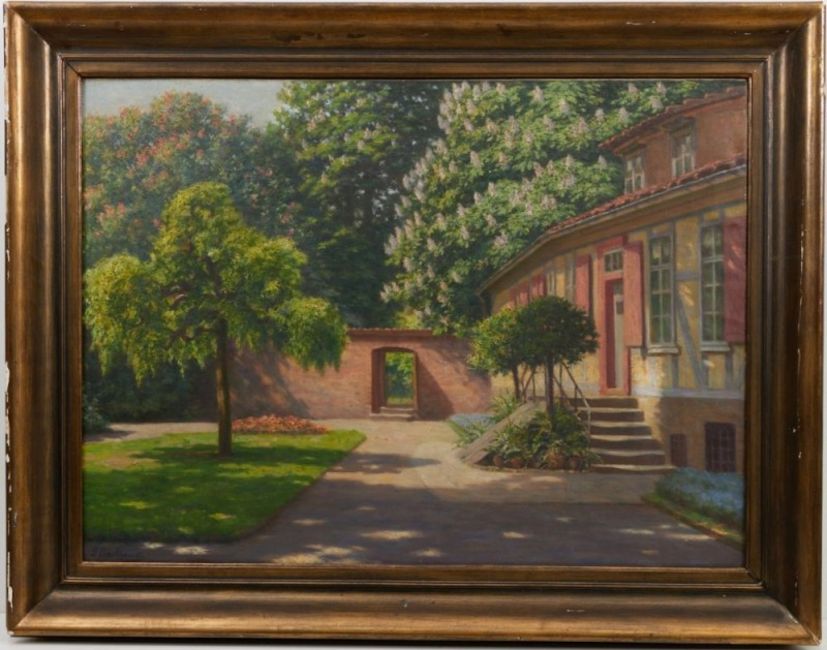 1870 Himmelreich bei Neustadt am Rübenberge - nach 1949 - "Frühling im Welfengarten" - Öl/Lwd. 60 x 82,5 cm. Sign. l. u.: G. Backhaus. Rückseitig auf Etikett betit. und bez. Rahmen.