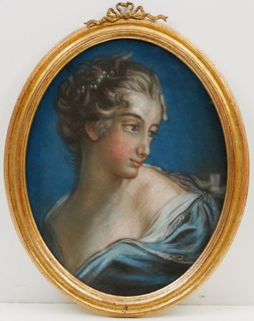 - Bildnis einer Dame - Pastelkreiden/Papier. 38 x 29,8 cm (Ovales Format). Rückseitig auf Unterlegkarton bez. Unter Glas gerahmt.