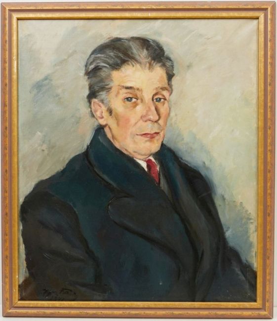 1881 Berlin - 1973 Hannover - Bildnis des Verlegers Hugo Enke - Öl/Lwd. 73 x 62 cm. Sign. und dat. l. u.: Ischi v. König / 1947. Verso numm.: 66/IX. Rahmen. Hugo Enke war Verleger der Wolfsburger Allgemeinen Zeitung.