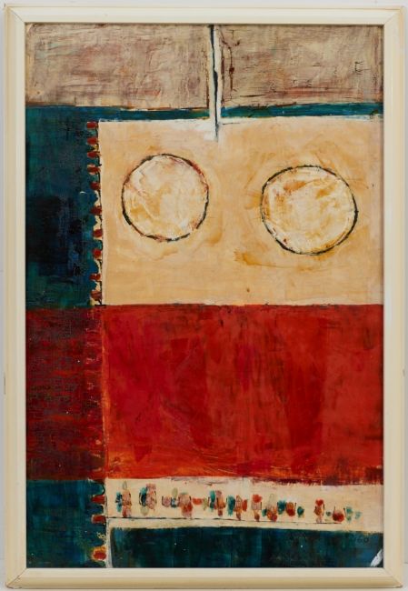 1936 Slaboda/Orel - 1980 Hannover - "Entwurf zu Femnova" - Öl/Hartfaserplatte. 75 x 50 cm. Sign. u. dat. r. u.: Baschlakow 1960. Rückseitig sign., betit. u. gewidmet: "Für Lutz Beulich 10. April 1979. - Provenienz: Geschenk des Künstlers. - Lit.: Lange, Rudolf. Alexej Iljitsch Baschlakow. Hannover 1989. Durch Kriegswirren gelangte Baschlakow nach Deutschland. Er studierte von 1954 bis 1959 an der Werkkunstschule Hannover bei Gerhard Wendland. 1967/68 erhielt er den Villa-Massimo-Preis, Rom.