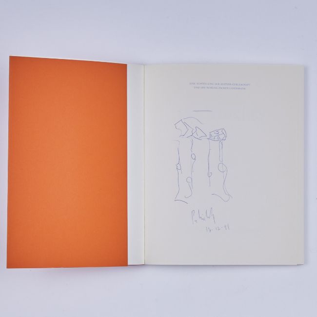1938 Kopenhagen - 2018 Kopenhagen - Per Kirkeby - Kestner-Gesellschaft" - (1991) Per Kirkeby. Kestner-Gesellschaft Hannover. Ausst. Kat. Hannover 1991. Mit Kugelschreiberzeichnung und Signatur des Künstlers auf dem Vorblatt: Per Kirkeby / 17.12.(19)91. Einband im hinteren Bereich lose.