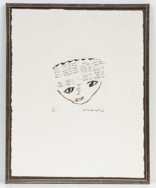 1927 Brüssel - lebt und arbeitet in Bouvigal - "Carta Canta" - Aquatintaradierung/Papier. 45/90. 12,6 x 14,5 cm, 42,5 x 33,5 cm, 45,5 x 36,3 cm (Maß m. Rahmen). Sign. r. u.: Alechinsky. Unter Glas gerahmt. Minim. stockfleckig m. r. Belgischer Maler, Zeichner und Grafiker. 1944 bis 1948 Studium an der Ecole Nationale Supérieure d'Architecture et des Arts Décoratifs in Brüssel. Alechinsky wandte sich 1946 der Malerei zu und schloß sich 1949 der Gruppe COBRA an.
