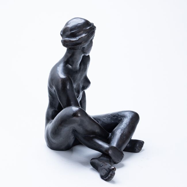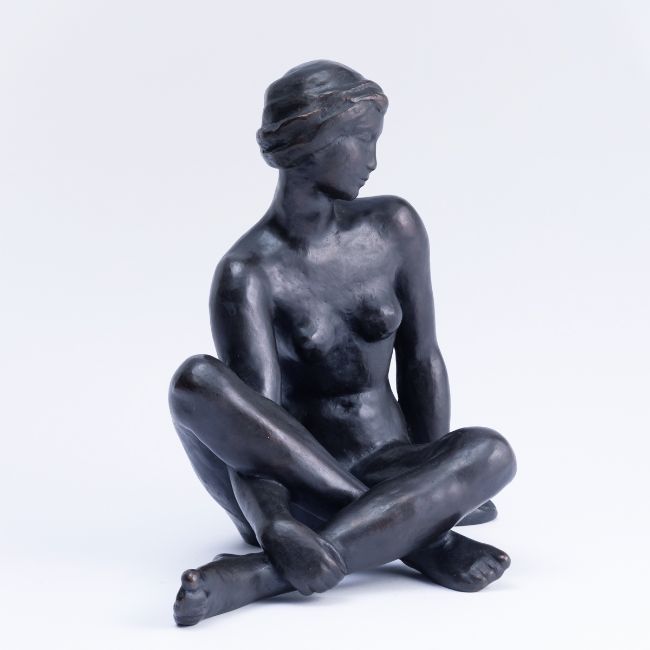 1870 Frankfurt/M. - 1960 Freiburg -"Mädchen mit Turban"- (wohl 1955) Bronze. Braun patiniert. H. 30 cm. Auf dem Fuß sign.: FH. Gießervermerk: H. Noack, Berlin. Die arbeit ist wohl um 1955 in einer kleinen Auflage entstanden. Laut Hermann Braun handelt es sich hier um eine verkleinerte Version von dem Steinguss "Am Strand" von 1926. - Lit.: WVZ Hermann Braun, 1991.S. 364, Nr. 131. - Lit.: Th.-B. XX, S. 502. Aus einer Künstlerfamilie stammend studierte Klimsch 1886/94 unter F. Schaper an der Berliner Akademie. Er erhielt 1894 den Staatspreis. Weitere Studien in Italien, hier Mitglied des Künstler-Vereins in Rom. Er lebte auch einige Zeit in Paris. 1898 war Klimsch Mitbegründer der Berliner Sezession. Seit 1912 war er Mitglied der Berliner Akademie. Klisch wurde 1921 Professor in Berlin.