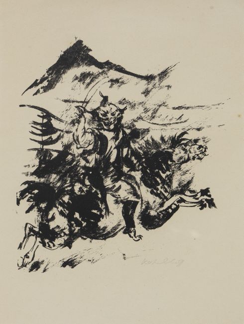 1893 Berlin - 1971 Schweinfurt - "Demon riding a horse" - Lithograph/paper. 24 x 21 cm, 33 x 25 cm (mat cut-out). Signed r. u.: Kohlhoff. Passepartout. Framed under glass. - Cited in: Keßling, Susanne. Wilhelm Kohlhoff. Selected works from public and private collections. Schweinfurt 1993, no. 292/5 Gr.