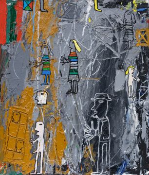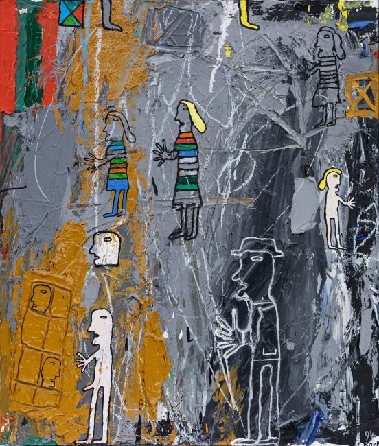 1935 Steinau/Schlesien - Figuren - (1994) Öl/Lwd. 70 x 60 cm, 71,7 x 61,5 cm (Maß m. Rahmen). Sign. u. dat. r. u.: (19)94 / Karl. Rahmen. Hans Karl war 1996 Ehrengast der Villa Massimo in Rom.