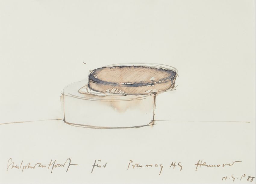 Monogrammist H. G. - Skulpturenentwurf - (1988) Aquarell/Papier. 20,5 x 28,5 cm (Passepartoutausschnitt). 42 x 51,9 cm (Maß m. Rahmen). Monogr. u. dat. r. u.: H. G. P. (19)88. Passepartout. Unter Glas gerahmt. - Provenienz: Unternehmenssammlung Niedersachsen.