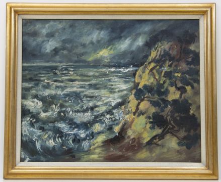 1893 Berlin - 1971 Schweinfurt - Expressive Küstenlandschaft - Öl/Lwd. 80,5 x 100 cm. Rückseitig auf Aufkleber mit Werkverzeichnisnummer-Vermerk: WVZ / N 25 Ö. Rückseitig mit Ausstellungsetikett: WILHELM KOHLHOFF / DER BERLINER SECESSIONIST / MUSEUM ZITADELLE - BERLIN SPANDAU / 14. JUNI - 4. AUGUST 1996. Rahmen. - Lit.: Keßling, Susanne. Wilhelm Kohlhoff. Ausgewählte Werke aus öffentlichem und privatem Besitz. Schweinfurt 1993. 1909 Lehre in der Königl. Porzellan-Manufaktur Berlin. Stellt 1914 ein Gemälde auf der Berliner Kunstausstellung aus. 1917 Rückkehr zur Berliner Secession. Arbeitsgemeinschaft mit B. Krauskopf. 1919 Großer Preußischer Staatspreis und Ausstellung mit B. Krauskopf bei der Kestner-Gesellschaft Hannover.