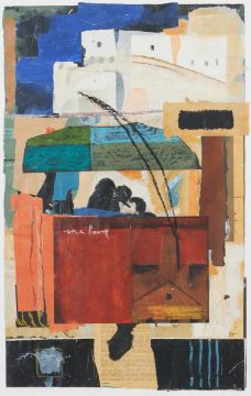 - Im Haus - (1995) Collage/Papier. 80 x 49,5 cm, 101 x 71,2 cm (Maß m. Rahmen). Sign. in der Mitte: (unleserlich). Dat. r. u.: (19)95. Unter Glas gerahmt. - Provenienz: Unternehmenssammlung Niedersachsen.